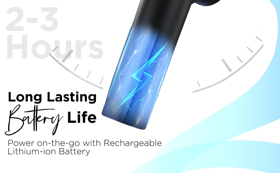 Rechargeable battery provides long hours of uninterrupted massage therapy on a single charge.