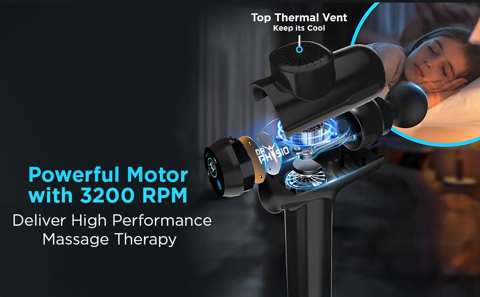Discover ultimate relaxation with the Dr Physio Touch Dynamo Massage Gun—your perfect partner for personalized recovery. It is engineered for unmatched durability and comfort. Rigorously tested for superior performance, it features an ultra-quiet operation for use in any setting and a sleek touchscreen for effortless control. The Auto Shut Off function ensures safety by powering down the device after 15 minutes of continuous use.