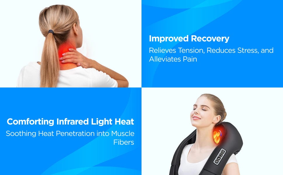 Deep-kneading massage nodes ease tension, stiffness, and pain in your neck and shoulders for instant relaxation.