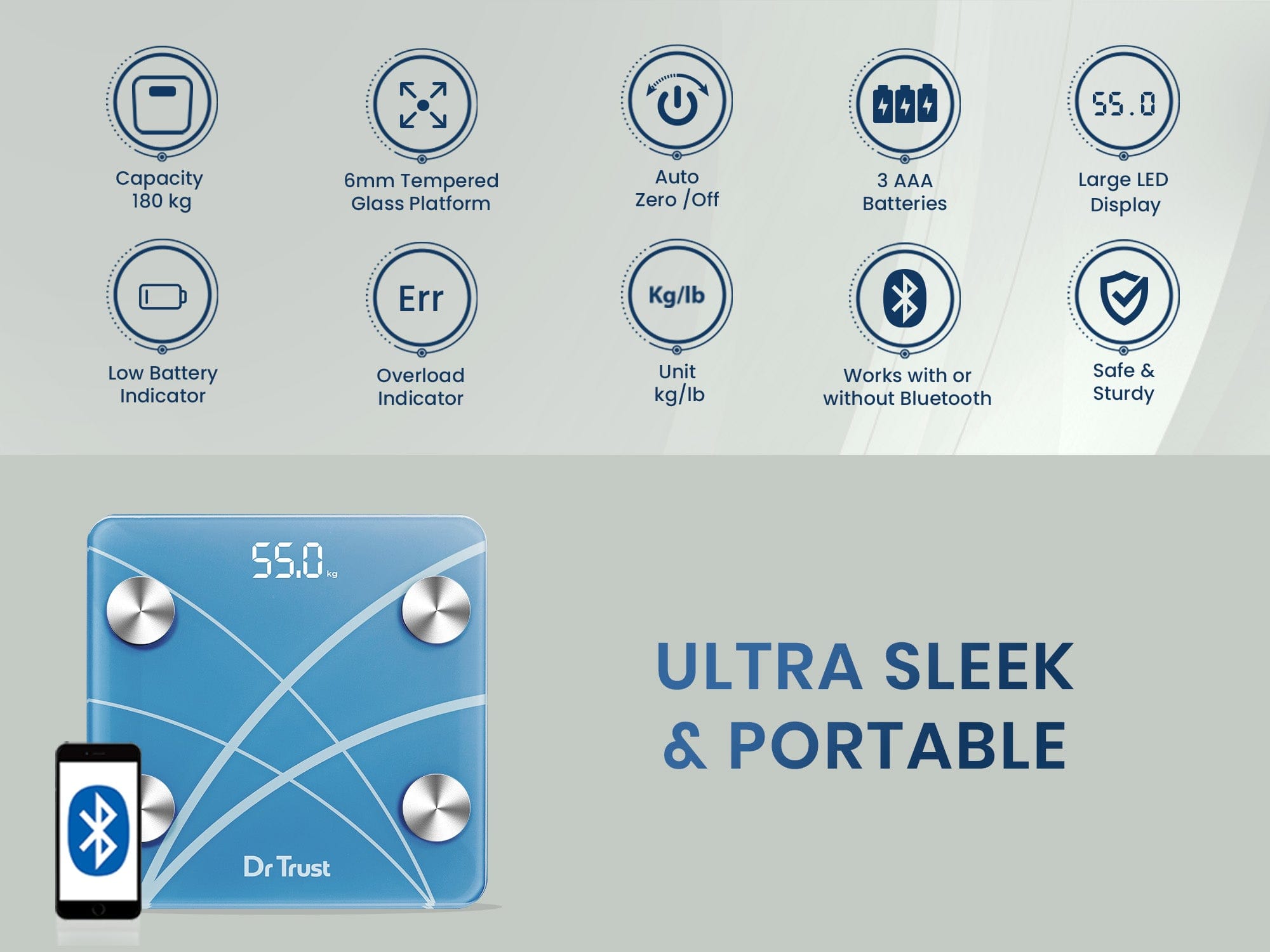 बेहतरीन गुणवत्ता और सुरक्षा की गारंटी है! उच्चतम गुणवत्ता वाले 6 मिमी टेम्पर्ड ग्लास के साथ निर्मित, हमारा स्केल इसे बेहतर विकल्प बनाने के लिए गोल कोनों के साथ आता है। एक स्टेप-ऑन-टेक्नोलॉजी उज्ज्वल एलईडी डिस्प्ले पर त्वरित परिणामों के साथ बेदाग विश्वसनीयता सुनिश्चित करती है।
