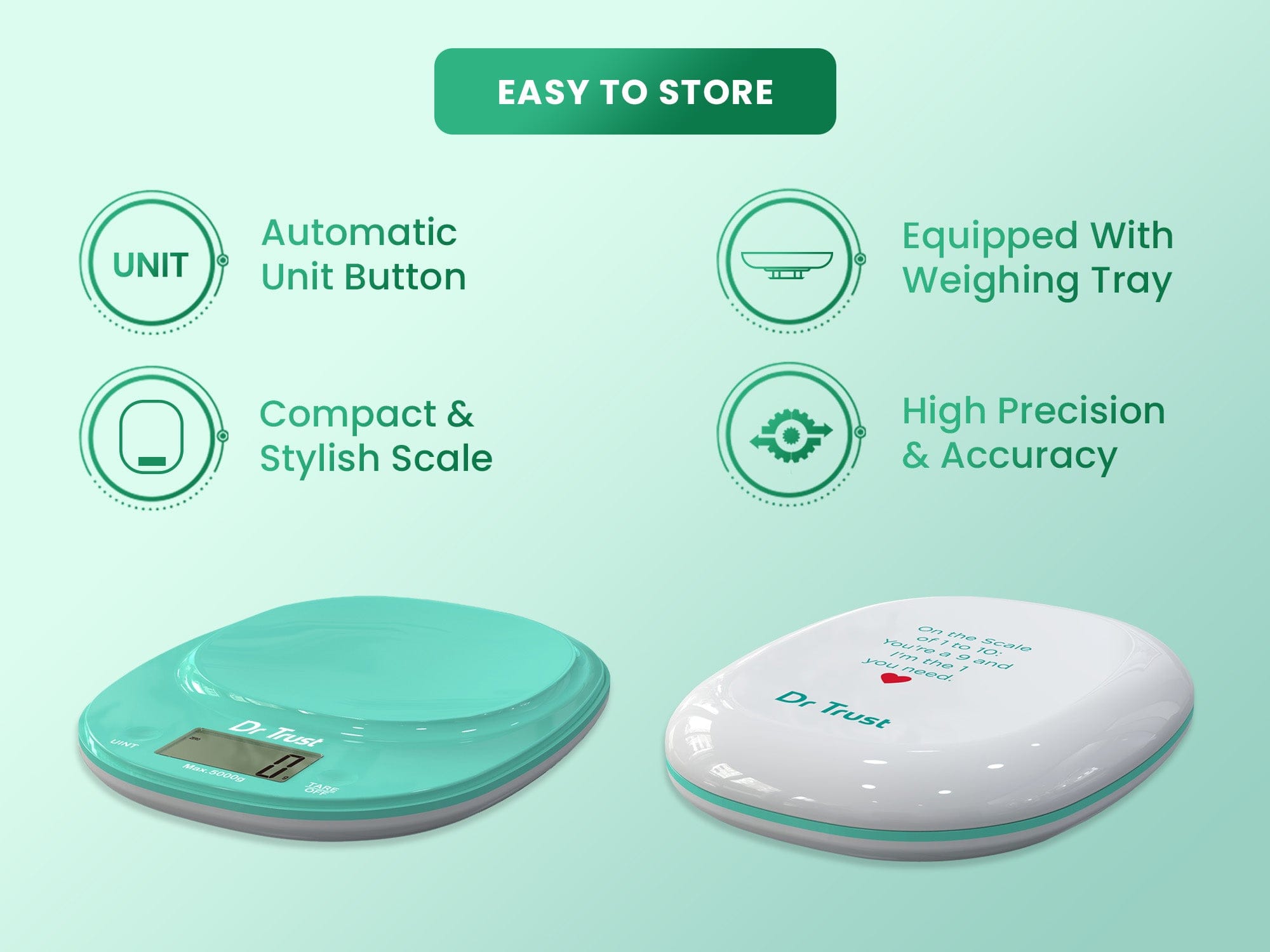 अब आपके किचन में कोई गंदगी नहीं! यह डिजिटल पैमाना एक आदर्श आकार है और आपकी रसोई में बहुत कम जगह लेता है। जब आप इसे कैबिनेट या काउंटर में रखते हैं तो यह स्केल सभी किचन एप्लायंस के साथ सुंदर दिखता है. एक मजबूत ABS सतह को आसानी से मिटाया जा सकता है।