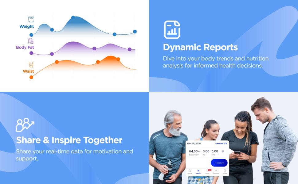 With dynamic reports and easy sharing, this scale helps you connect, compare, and motivate yourself and others on the path to better health.