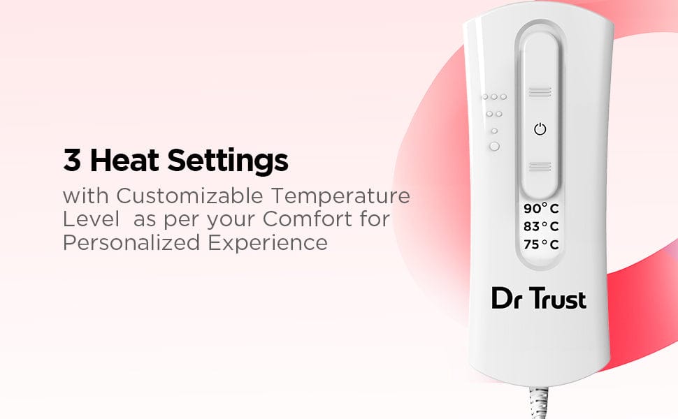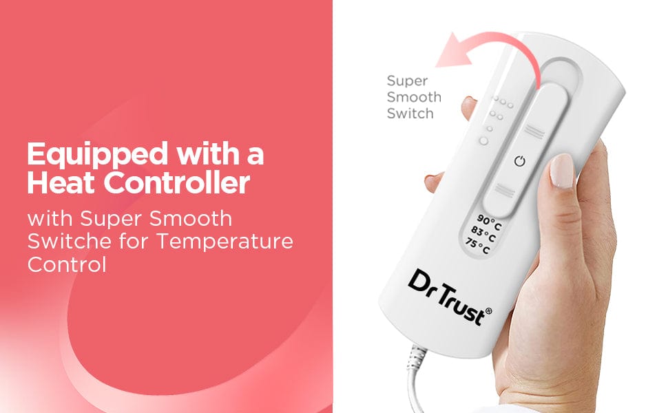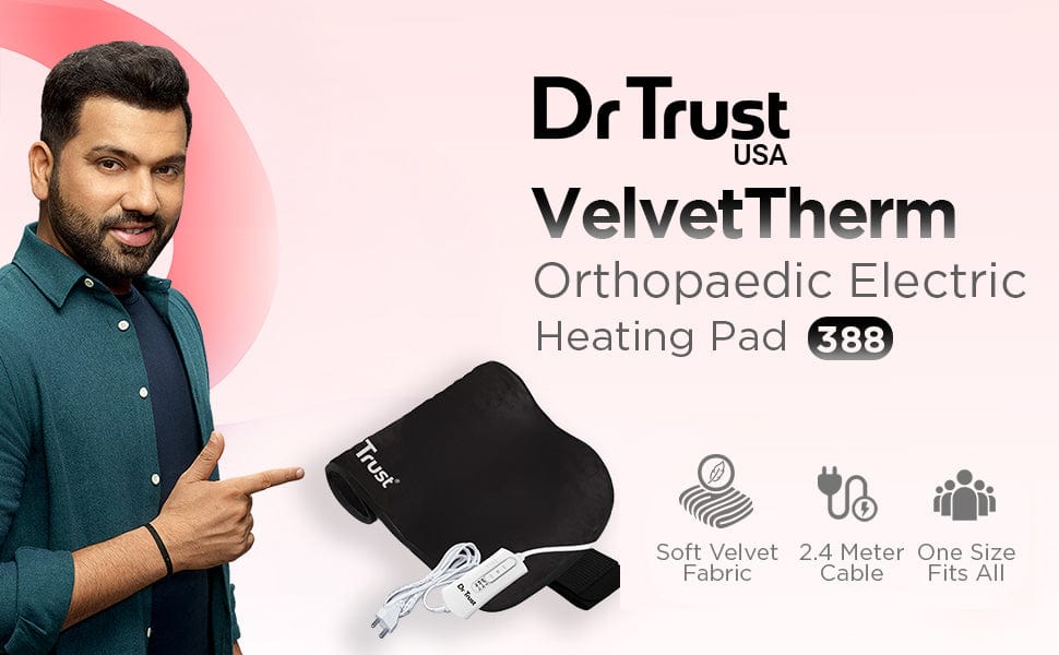 The Dr Trust Velvettherm Heat Belt 388 is your ultimate solution for quick and effective pain relief. Designed to provide soothing warmth in just 2 minutes, this heat belt helps alleviate muscle stiffness, joint pain, and cramps while enhancing blood circulation for faster healing. Made with super-soft fabric, it ensures luxurious comfort and is gentle on your skin. Its flexible, large design adapts to various body parts, offering versatile use for the back, shoulders, stomach, knees, and more. With 3 pre-set heat levels, you can customize the temperature to suit your needs, while the built-in dual thermostat and auto shutoff guarantee safety during use. The 2.5-meter long power cord adds convenience, and a ready-to-use indicator light ensures hassle-free operation. Whether it’s for daily aches or post-workout recovery, the Velvettherm Heat Belt delivers reliable and safe heat therapy, making it a must-have for your health and wellness routine. Heat pad for women, Heat pad for men, Heat belt for period pain, Heat belt for lower back pain, Heat belt for menstrual Cramps, Heat belt for shoulder pain, Heat belt for knee pain, Heat pad for menstrual cramps, period pain.