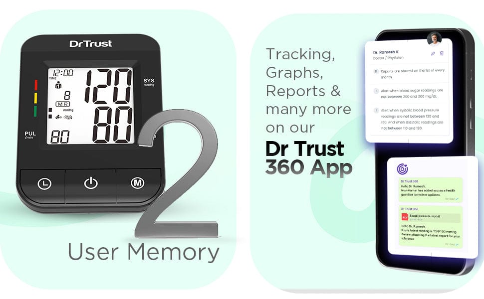With dual-user memory and the Dr trust 360° App, this monitor keeps your blood pressure history organized, accessible, and easy to review anytime.