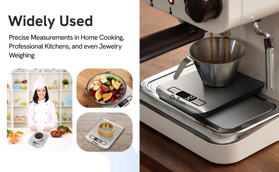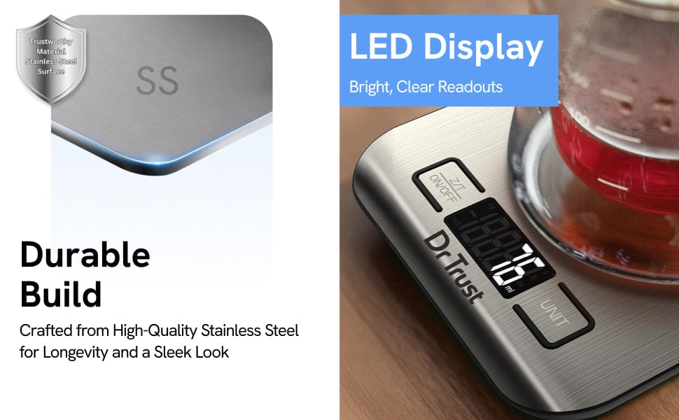 Lightweight and compact, the Dr Trust Kitchen Scale is perfect for on-the-go use. It runs on 2x 1.5 AAA batteries and comes with a smart auto-off function to save power. Whether you’re traveling, attending cooking classes, or simply saving space in your kitchen, its portable design makes it a versatile and convenient food weight scale.