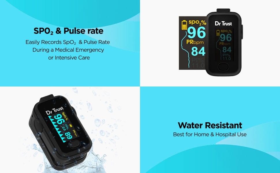 Our device records SpO2 and pulse rate during a medical emergency or intensive care. This device is widely used in clinics, hospitals, and homes to record vital signs of patients with respiratory issues like COPD, COAD, emphysema, asthma, etc.