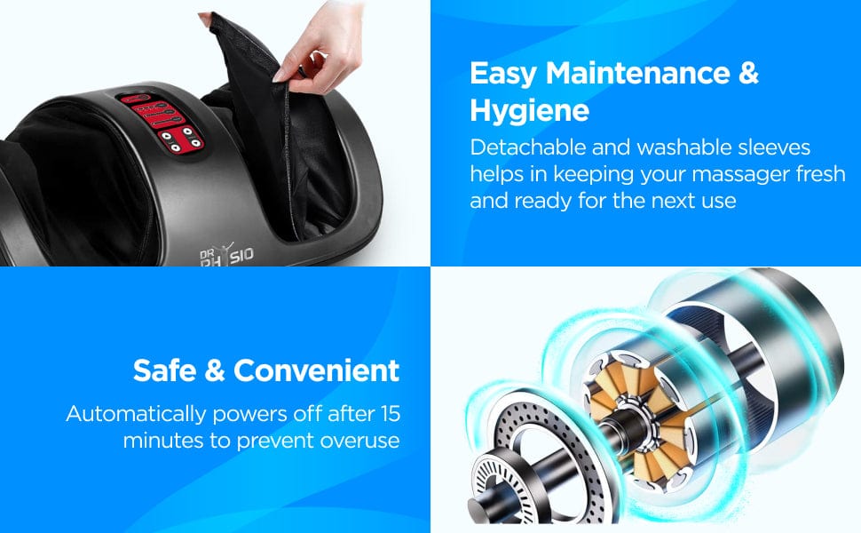 எந்த நேரத்திலும், எங்கும் வசதியான கால், கால், கை மற்றும் கை மசாஜ் வழங்க வடிவமைக்கப்பட்டுள்ளது. மசாஜரின் கட்டுமானம் நீடித்த மற்றும் உறுதியானது. அதன் ஏபிஎஸ் பாடி வழுக்கும் பரப்புகளில் பாதுகாப்பான பயன்பாட்டிற்காக ஆன்டி-ஸ்லிப் பேஸ் உடன் வருகிறது. 15 நிமிட பயன்பாட்டிற்குப் பிறகு தானாக மூடப்பட்டு பாதுகாப்பாக உணர்வீர்கள்.