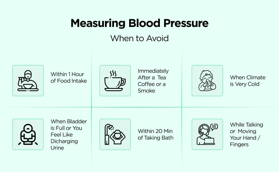 For reliable results, ensure you are relaxed and at rest — not right after meals, workouts, or smoking.