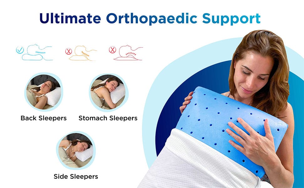 If you suffer from neck pain, our cervical pillow is your ultimate solution. Wake up feeling refreshed and free from the aches and discomfort that often plague your mornings! Our orthopaedic cooling gel memory foam pillow is expertly engineered to cater to the specific needs of individuals with neck issues, neck strain, or sore necks.