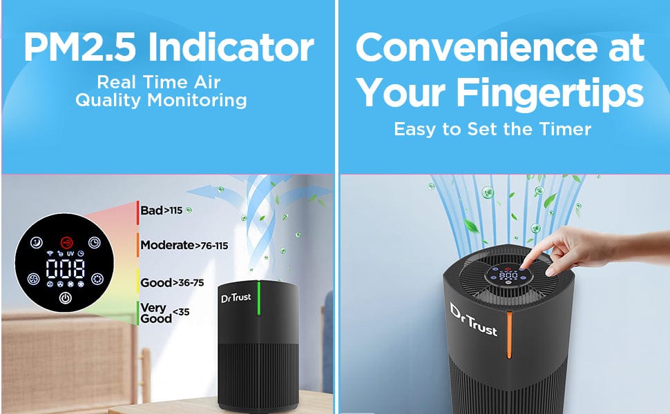 This filter works in synergy with the Zurich Air Purifier’s UV-B light to neutralize harmful bacteria and viruses. It’s a powerful addition for a healthier, safer environment, giving you peace of mind with every breath. Keep an eye on the PM2.5 indoor air quality indicator to monitor purification efficiency in real time.