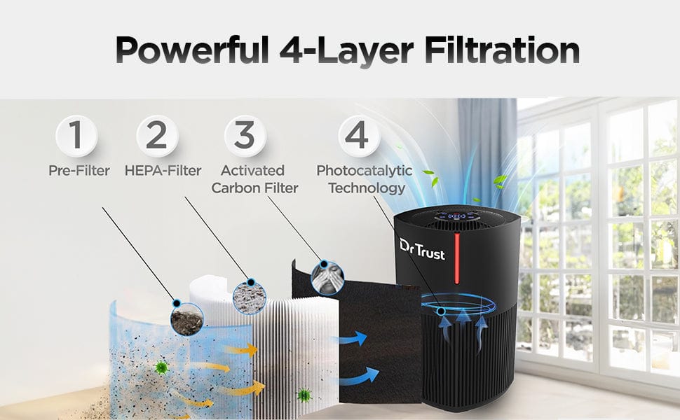 Dr Trust USA filter Dr Trust Zurich Air Purifier 908 Compatible Replacement Filter Accessory 910 I 4-Layer Filtration I HEPA I Activated Carbon & UV-B Technology I 360° Clean Airflow, Removes Pollutants & Micro Allergens I Up to 270 Sq. Ft Area