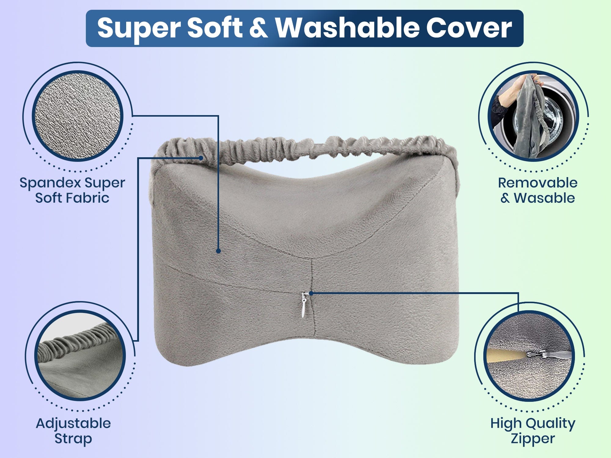 அதன் வெல்போ கவரேஜ் எளிதாக சுத்தம் செய்ய இயந்திரம் துவைக்கக்கூடியது. அட்டையை எளிதாக அகற்ற, அட்டையை அவிழ்த்து விடுங்கள். சிறிய (அளவு- 254*180*170 மிமீ) மற்றும் இலகுரக (355 கிராம்) தலையணையானது முழங்கால்கள் அல்லது கால்களுக்கு இடையில் (நழுவாமல்) மீள் பட்டையின் மூலம் சரியாகச் சீரமைக்கப்படும், இதனால் அவை சங்கடமான முறையில் ஒன்றாகத் தட்டுப்படாது.