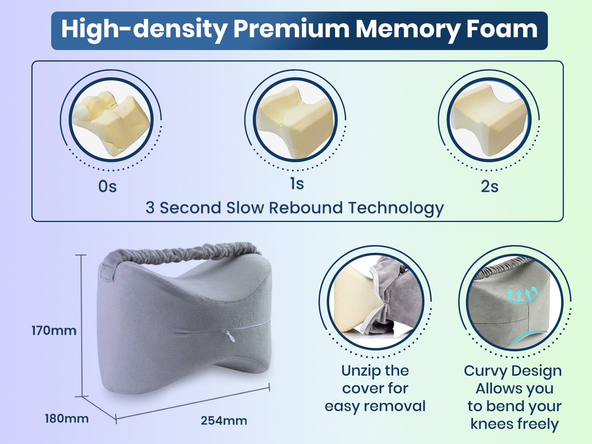 எந்த தொந்தரவும் இல்லாமல் ஆரோக்கியமான மற்றும் வசதியான தூக்கத்தைப் பெறுங்கள். எங்கள் முழங்கால் குஷன் நாள்பட்ட வலிகள் மற்றும் வலிகளால் பாதிக்கப்பட்ட மக்களுக்கு அதிக ஆதரவாக வடிவமைக்கப்பட்டுள்ளது. அதன் வளைவு வடிவ வடிவமைப்பு மற்றும் அதிக அடர்த்தி நினைவக நுரை முழங்கால்கள் மற்றும் தொடை பகுதிகளுக்கு இடையே சரியான உறுதியான தங்குவதற்கு அனுமதிக்கிறது.